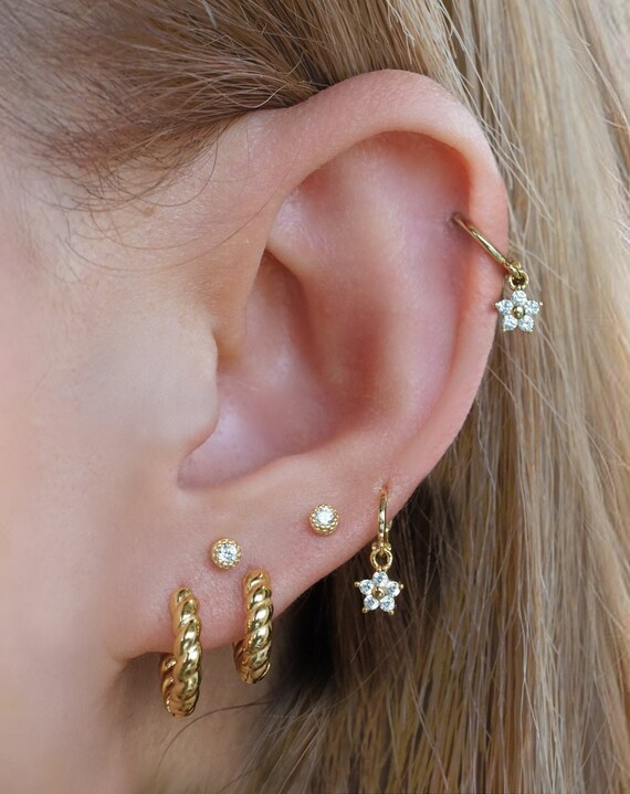 6mm 8mm Tiny Flower Cartilage Hoop Flower Huggie Earrings Etsy
