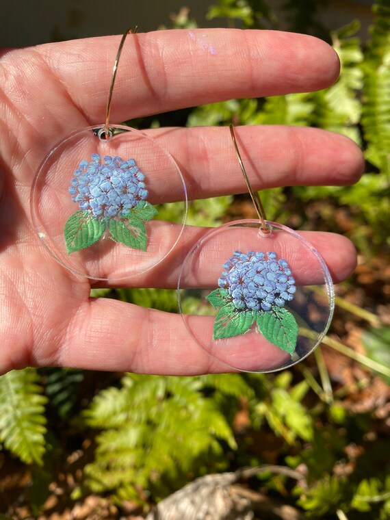 Hydrangea Earrings Floral Hoop Earrings Etsy
