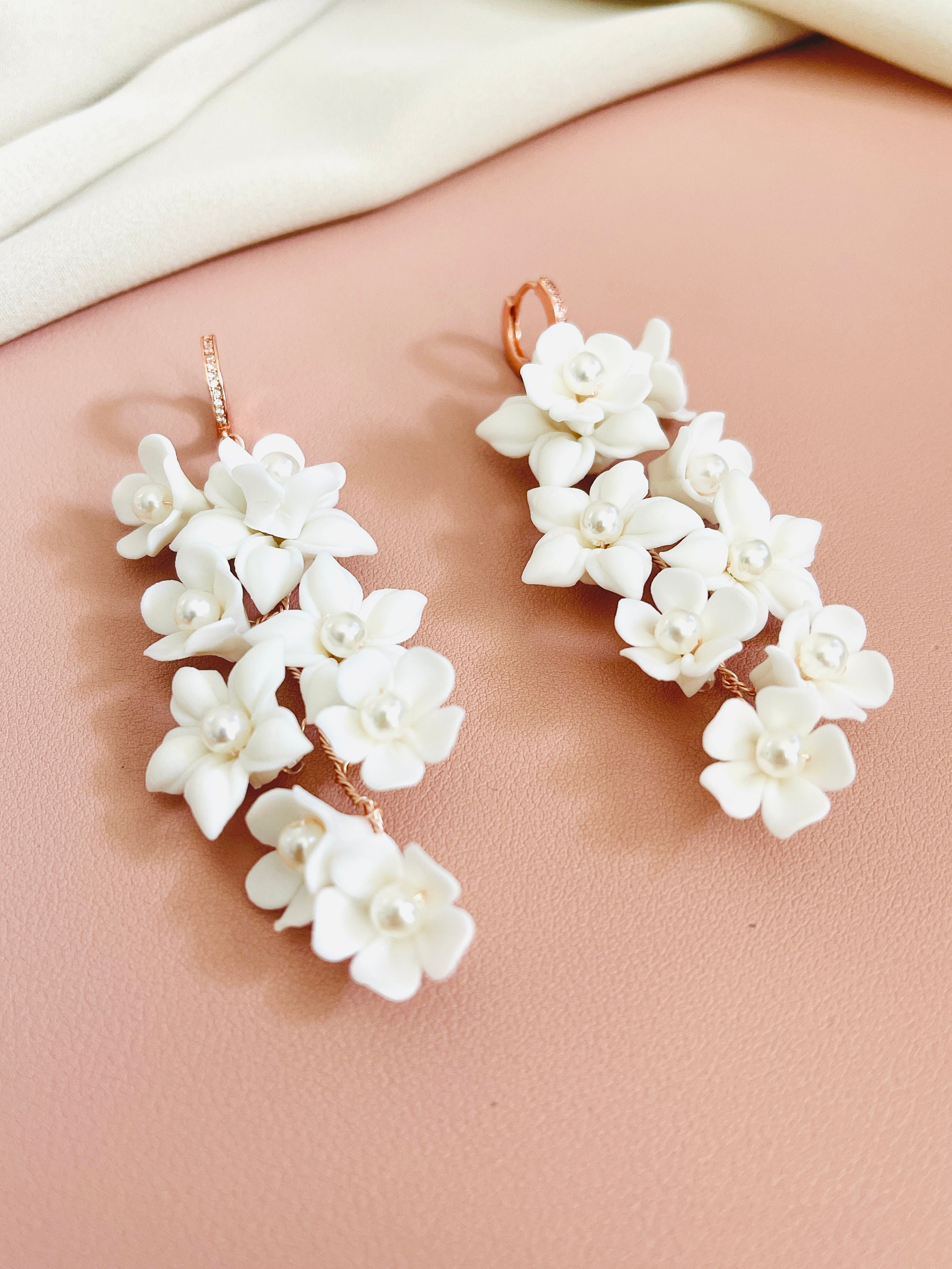 White Flower Dangle Earrings Gold Charm Hoops Drop Earring Etsy Israel