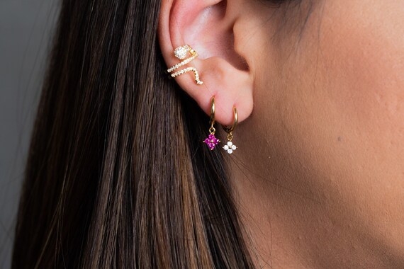 Dainty Cz Flower Shaped Charm Huggie Hoop Earrings Etsy Australia