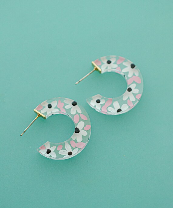Pink Flower Hoops Hand Painted Hoops Colorful Hoop Earrings Etsy Uk